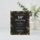 Gold Stars 50th Jubileum Budget Invitation bevat delicate gouden liefdeshart en steruitsparingen. Personaliseer uw 50ste gouden jubileuminformatie met elegante gouden belettering.