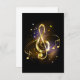 Jewelry, gold, musical treble clef with golden notes and stars on black glowing background.