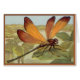 merveilleuse libellule vintage reposant sur une feuille. l'insecte a des tons or et marron et l'arrière - plan montre un marais avec de l'eau et des lilypads.