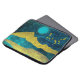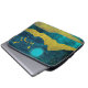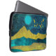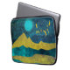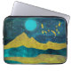 Het abstracte landschapsontwerp in de bergen in vette tinten van goud, cyaan en blauw met een moonstijging, sterren en vogels.