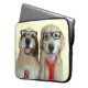 Iedereen houdt van een nerd, nietwaar? Deze laptophoes bevat twee gouden hondenhonden met een zwarte nerd bril. Een paar wordt zelfs samen gehouden met zilveren tape.