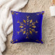 Een decoratieve kerstkussen met een gouden sneeuwvlok op een kleurrijke blauwe achtergrond om een aanraking van kleur en stijl toe te voegen aan uw kerstwoning die dit vakantieseizoen versiert.