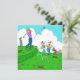 Een golfer neemt een t-shirt-off schot op een golfbaan. Hij slaat de golfbal mis en zijn medegolfers vinden dit hilarisch en lachen onbeheersbaar. Cartoon is van de Britse cartoonist Nigel Sutherland.