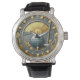 Vier het spel met een speciale Black Leather Strap Watch De Mannen-Vintage Leather Watch is een horloge met een groot gezicht dat nooit uit de mode zal raken. Met een kwartsbeweging met drie handen en een echte lederen band, is de klassieke look van dit horloge geweldig voor zowel formele als leuke gelegenheden. Mannen polshorloge Materiaal: Gezicht: Legerriem: Lederen Afmetingen: Gezicht: 1.45 "Diameter riem: 9.25" x 0.86 "Hoesje: 1.75" Diameter Gewicht: 0.115lb 3-hand analoog Japan Quartz® Full color custom printing on face sluiting van gesp Water Resistance: Tot 3 ATM (98.4 ft) 1 jaar fabrikanten beperkte garantie Batterij inbegrepen