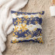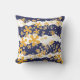 Golven, blauw, mosterdgeel, wit, bloem kussen