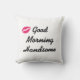 Heldere roze lippen en "Good Morning Handsome" versieren deze witte kussen, waardoor het het perfecte accent is voor de slaapkamer of een schattig cadeau voor hem op de Valentijnsdag of zijn verjaardag.
