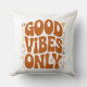 Spread positivity in style with this minimalist "Good Vibes Only" pillow. Retro 70s-inspired arched font, subtle geometric patterns, and soft earthy tones create a laid-back, feel-good vibe that's perfect for everyday use.