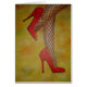 Goody Two Shoes is een origineel schilderij in rood en geel van een vrouw die visnetkousen en fel rode schoenen draagt. Een uniek cadeau met een mode-thema dat ideaal is voor Red Shoe Day-campagnes of Red Shoe Walks. Ideaal voor diegenen die van leggings, kousen en mode houden, liefhebbers van een grove blik, of fetisjisten van kousen en hoge hakken. © schilderen 2008