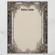 Een ingewikkeld scrollwork lijst in gepolijst, oud goud op een zwarte achtergrond geeft een Gothic vibe aan deze donkerkleurige stationery. Het midden is verouderd perkament, en de achterkant is effen, in dezelfde oude perkament kleur.