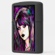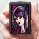 Gothic Meisje 2 Zippo Lighter De voorgedragen kunst is origineel en uniek. Dit ontwerp is nergens anders beschikbaar. Elke gelijkenis met feitelijke, levende of dode personen of met feitelijke gebeurtenissen is puur toeval. Het hier vertegenwoordigde gothic meisje is een heel fictief kunstwerk.