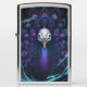 Make a bold statement with this striking Gothic Ice Peacock Skull Zippo®. This design features a cold, intense peacock with glowing blue eyes, a bone-white skull head, and a sweeping display of deep blue and purple feathers. Electric accents flow around the bird, creating a powerful, otherworldly look that pairs perfectly with the iconic Zippo® metal finish. A standout piece for anyone who loves dark fantasy, gothic artwork, or unique animal-inspired designs.