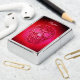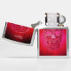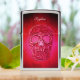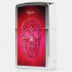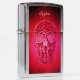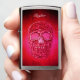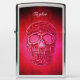 De kop van de Gothische schedel gloeit een rode zwarte aansteker. Aangepaste naam, trendy, cool, griezelig, macaber, eng, spookachtig, modern Halloween-stijlontwerp. Afbeelding copyright Marg Seregelyi Fotografie.