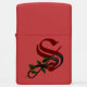 Het oude Engelse middeleeuwse doopvont initiaal S, die in twee lagen wordt getextureerd. De bovenkant in diep rood, van het metaal, de bodem in zwart glad metaal met een rode reflectie. Als decoratie een bloedrode roos, bijna verwelkt. Een monogram dat goed is voor mensen met een donkere, gothische smaak en roos- en bloemliefhebbers