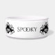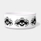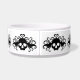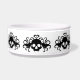 Een Schattigee gotische kat- of hondenschotel met een patroon van zwarte gevleugelde schedels met harten die eromheen draaien. Voeg de naam van je huisdier eraan toe.