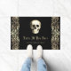 Begroet je gasten met deze spookachtige chique Halloween-deurmat! Stijlvolle Gothic Glam Gepersonaliseerde Deurmat voor uw Halloween feest. Het ontwerp is voorzien van een witte schedel met gouden ornamenten op een zwarte achtergrond met "Enter If You Dare" in typografie. lettertypen voegen een authentieke uitstraling toe aan dit Gothic Glam-ontwerp. Deze mat is klaar om te worden gepersonaliseerd met jouw naam en uw eigen aangepaste bericht. De achtergrond kleur is aan te passen.