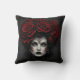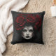 Elevate your space with this striking throw pillow featuring a gothic-inspired woman adorned with dark red roses in her hair and intricate face patterns. Her intense gaze draws you in, making this piece both mysterious and captivating. Perfect for adding a touch of dark romance and artistic flair to any living room, bedroom, or cozy nook.