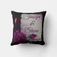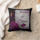 Een gepersonaliseerde trouwkussen die dat speciale woord herdenken. Ontworpen met een gotisch uiterlijk. Een oud grijsperkamentpapier met de verven van paars-rood om de randen. Een magenta roos in volle bloei, een rozenbud, een kaars en een zilveren kade op een donkerbruine achtergrond creëer een prachtig, donker en mysterieus gotisch design.