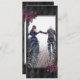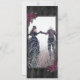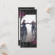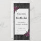 Donkermooi sparen de datumkaart met de Dood ons Deel gezegde, donkere paarse rozen en een zwarte diamantpatroon achtergrond. Manuscript typografie. Pas je eigen foto aan op de voorkant en details aan de achterkant.