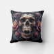 Een ingewikkeld gedetailleerde weergave van een sinistere schedel omringd door levendige rozen, versierd met gotische versieringen, die duistere symboliek en schoonheid vermengen in een artistieke en surrealistische weergave.