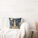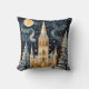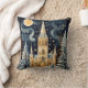Dit seizoensgebonden Gouache stijl kussen met een kerkje en dennen in een bosrijke nachtelijke omgeving voor de feestdagen.
