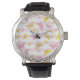 Goud en roze vlinder horloge