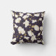 Moderne kussens met een elegant bloempatroon met prachtige gouden en witte gestileerde orchideeën op een donkere paarse achtergrond.