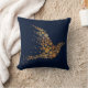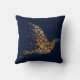 Elegant designer accent gooi kussen gedaan in een middernachtblauw, met mooie graphics van een gouden abstract vogeltje gemaakt van stippen. Pas dit mooie kussen aan met je eigen tekst of laat het zoals het is voor een geweldig kameraccent of cadeau-idee.