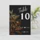 Een vrijstaande tafelnummerkaart met handgetekende gouden bloemen en eucalyptusloof. Uitzicht de overeenkomende items in mijn "DreamHut" winkel.