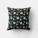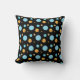 Mooi werpkussen met gouden en turquoise stippen op zwarte achtergrond.