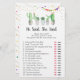 Deze elegante Hij Zei Zij Zei spelkaarten zijn een leuke activiteit voor een Bruidsfeest. Geef ze gewoon rond tijdens het Bruidsfeest waar de gasten lol zullen hebben met het raden wie elke uitspraak heeft gedaan. Je kunt zelfs de uitspraken aanpassen! Het ontwerp bevat waterverf succulenten met gouden glitters en kleurrijke feestvlaggen.