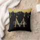 Gouden Glitter Drips Monogram Elegant Script Zwart Kussen
