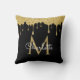 Chique zwart en goud glitter druppels monogram gooien kussen. Ontworpen door Thisnotme©