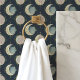 Transformeer je ruimte in een hemels droomlandschap met dit betoverende maanfasen behang. Gouden halve manen, volle manen en glinsterende sterren sieren een diepblauwe hemel en creëren een betoverende en magische sfeer. Deze peel en stick wallpaper is gemakkelijk aan te brengen en te verwijderen, waardoor het perfect is voor het toevoegen van een vleugje grillige charme aan elke kamer.
