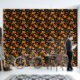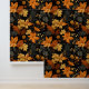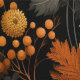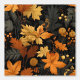 Een opvallend herfstthema met gedurfde en rijke goudgele en verbrand-oranje bladeren tegen een diep zwarte achtergrond. De ingewikkelde details van de bladeren, samen met de subtiele opname van bessen en varens, creëer een gevoel van warmte en textuur. Het gedempte donkergroene en grijze gebladerte voegt diepte toe, waardoor de levendige herfstkleuren opvallen en de essentie van het herfst-seizoen met elegantie inkapselen.
