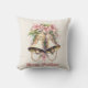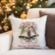 Decorator kussen met gouden kerstbellen met roze bloemen. tekst zegt "Vrolijk kerstfeest".