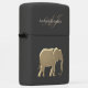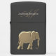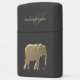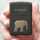 Verfijnd zwart mat Zippo-aansteker met een geëmbosseerd gouden olifantontwerp met elegante monogram-initialen en naam-personalisatie. Een perfect cadeau voor hem, dierenvrienden of bruidsjonkers. Deze tijdloze en gewaagde accessoire combineert exotische symboliek en gepersonaliseerde luxe in één onvergetelijk stuk.