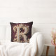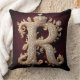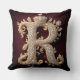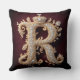 Een ingewikkelde gouden letter 'R' ingebed met glinsterende diamanten, met versierde bloemendetails en een koninklijke kroon over een diepe kastanjebruine achtergrond, met luxe en extravagantie.