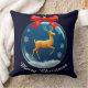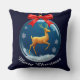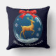 Elegant kerstornament met een gouden rendier, een levendige rode boog, sneeuwvlokken en sneeuwdetails, die warmte en viering van het vakantieseizoen in een decoratieve stijl oproepen.