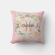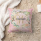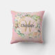 Mooie monogram sierkussen met een naam en initiaal van de achternaam in een sierlijk schrift omlijst door een delicate waterverf rozenkrans bloem op een roze geode agaat achtergrond. Personaliseer om een speciaal aandenken cadeau te maken om te koesteren! Ontworpen door Thisisnotme©