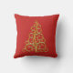Eenvoudig en elegant, deze felrode kussens hebben een eigentijdse, goudgescrolde kerstboom. Hetzelfde ontwerp is aan beide kanten."