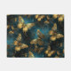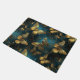 Een elegante deurmat met een vlinderpatroon in glinsterende gouden tinten en gloeiende blues.
