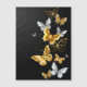 Goud, juwelen en witte vlinders op zwarte achtergrond. Golden vlinder.