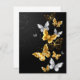 Goud, juwelen en witte vlinders op zwarte achtergrond. Golden vlinder.