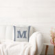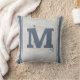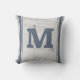 Grain Sack Blue Grey Verticale striptie Monogram M Kussen