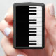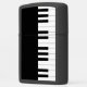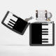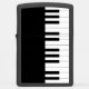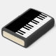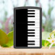 Zwart-witte pianokleutels op een zwarte achtergrond.
