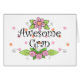 Dites à tout le monde que vous êtes le plus génial Gran avec ce superbe design de t-shirts. Ce tout nouveau design présente les mots "Awesome Gran" en lettres noires pour se distinguer du arrière - plan de belles fleurs au-dessus et au-dessous dans une variété de couleurs. Quelle meilleure façon de montrer à votre grand-père à quel point elle est géniale. Ce nouveau design est présenté sur t-shirts, casquette, tasse de café, sacs fourre-tout, porte - clés, magnets et bien plus encore!
