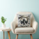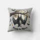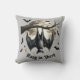 Grappige Halloween-kunst op een kussen, ideaal voor uw seizoensgebonden inrichting of feestgasten, met een vleermuis die ondersteboven tegen een volle maan hangt.