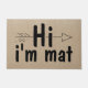 Deze grappige doormat bevat de zin "Hi I'm Mat" op de bijtende faux burlap. Het perfecte, unieke, moderne huishouden of nieuwe huiseigenaars cadeau.
