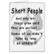 Het perfecte ontwerp voor korte mensen. In de tekst staat: "Korte mensen. God laat alleen dingen groeien tot ze perfect zijn. Sommigen van ons hebben niet zo lang geduurd als anderen!!"