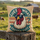 Deze gewaagde en humoristische illustratie toont een zelfverzekerde haan die een paar coole zonnebrillen draagt, geplaatst tegen een retro-achtergrond met warme vintagekleuren. De klassieke “Raad eens? Kippenkont” grap wordt tot leven gebracht met een western-vergaderde jaren 80-esthetiek, waarbij boerensfeer wordt gecombineerd met speelse nostalgie. Met zijn versleten, zonsondergang-gestreepte achtergrond en gewaagde typografie heeft dit ontwerp een rustieke, maar moderne aantrekkingskracht, perfect voor degenen die van boerenhumor of excentrieke dierlijke kunst houden. De combinatie van vintage Americana en luchtige komedie maakt het ideaal voor iedereen die geniet van een leuke, ontspannen esthetiek met een beetje western-cowboyattitude. Door AI gegenereerde kunst.